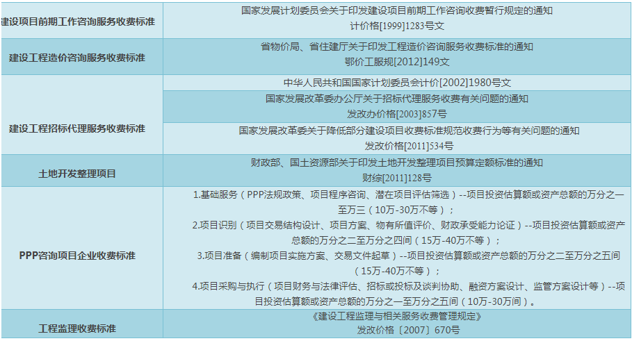 建設工程造價咨詢服務收費標準----湖北省收費文件