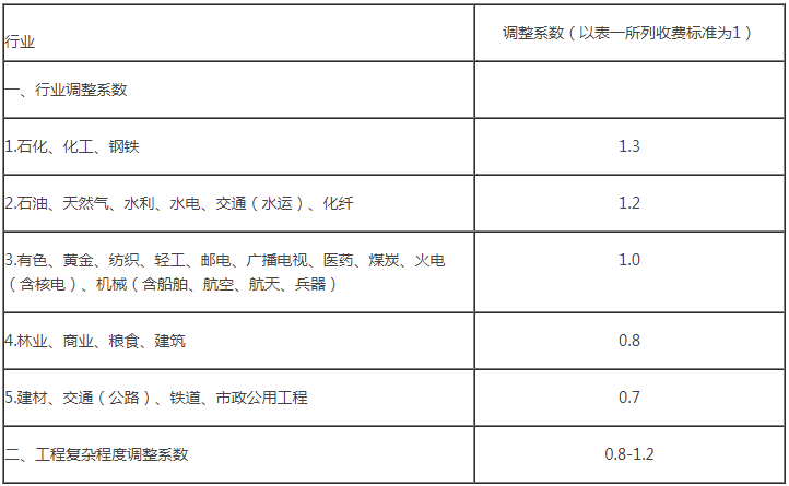 注:工程復雜程度具體調(diào)整系數(shù)由工程咨詢機構(gòu)與委托單位根據(jù)各類工程情況協(xié)商確定。