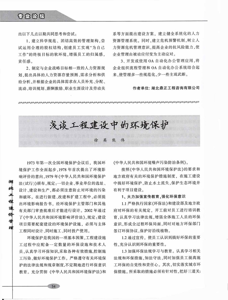 熱烈祝賀我公司員工所著文章《工程造價咨詢企業(yè)的人力資源管理淺析》在《湖北工程造價管理》雜志