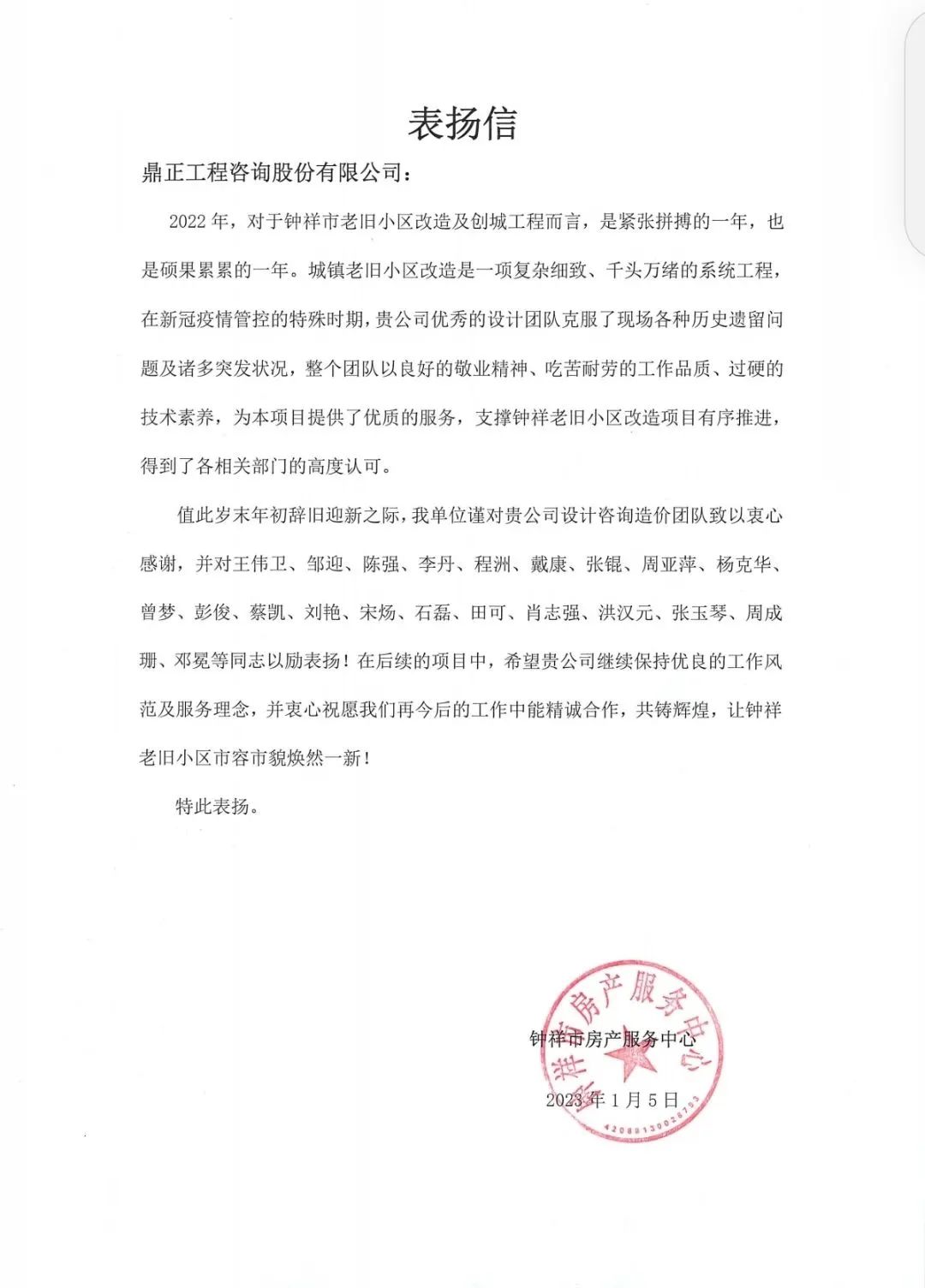 寒冬歲末之際,陸續接收到多封表揚信、感謝信,一個個贊許,一句句肯定,是鼎正成績單上最好的評語,感謝每一位業主的認可和督促,因為有你們,才能讓我們成為更好的自己!