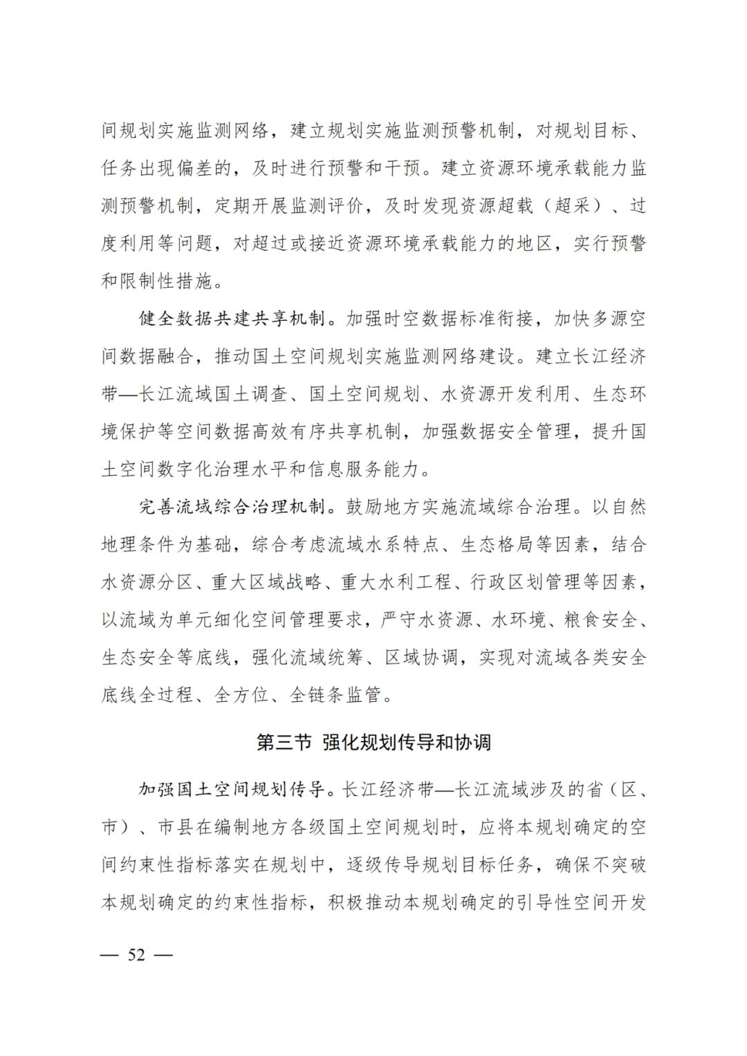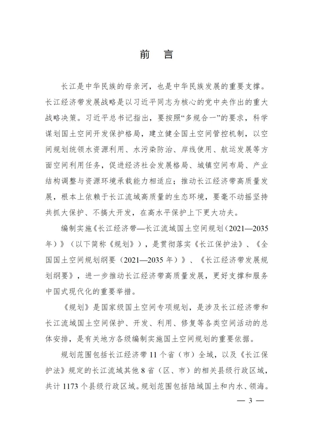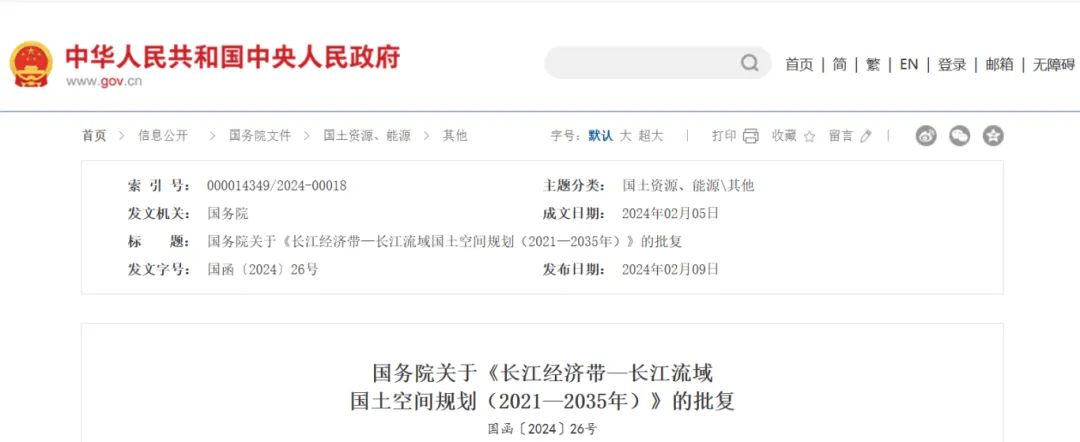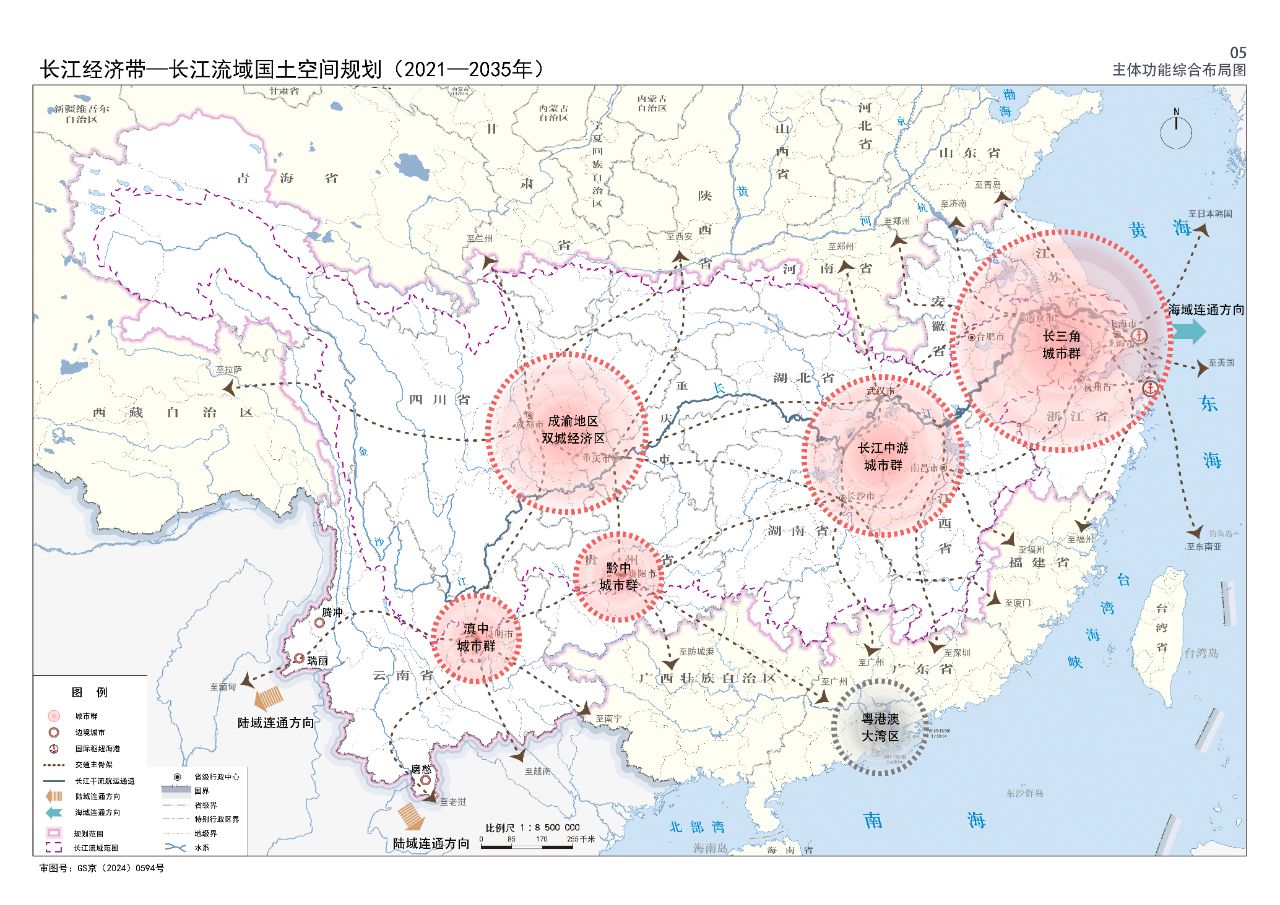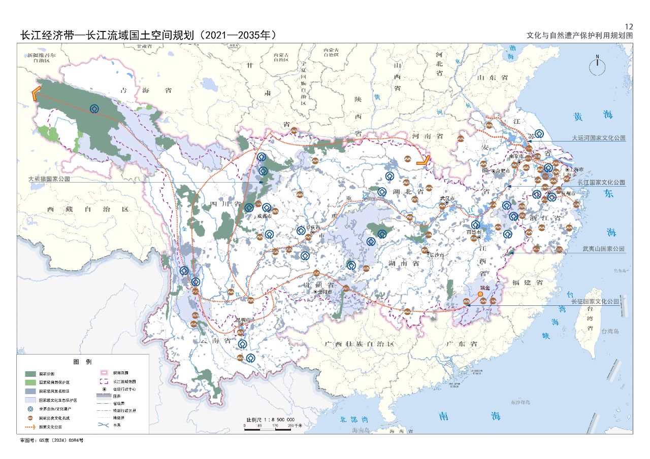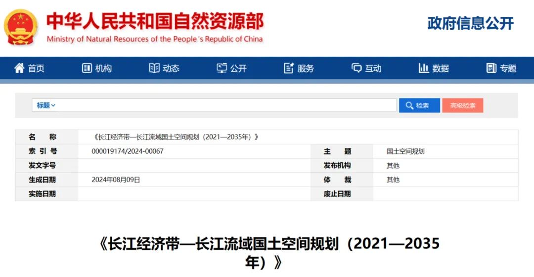 2024年2月9日,《長江經濟帶—長江流域國土空間規劃(2021—2035年)》經國務院批復同意。9月10日,自然資源部正式印發《長江經濟帶—長江流域國土空間規劃(2021—2035年)》。規劃范圍包括長江經濟帶11個省(市)全域,以及《長江保護法》規定的長江流域其他8省(區、市)的相關縣級行政區域,共計1173個縣級行政區域。規劃范圍包括陸域國土和內水、領海。其中,陸域面積240萬平方公里。(后附規劃范圍詳細表格)規劃期限為2021年至2035年。