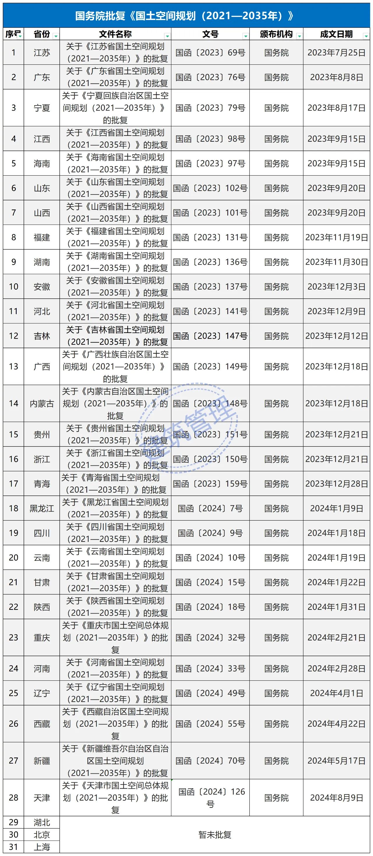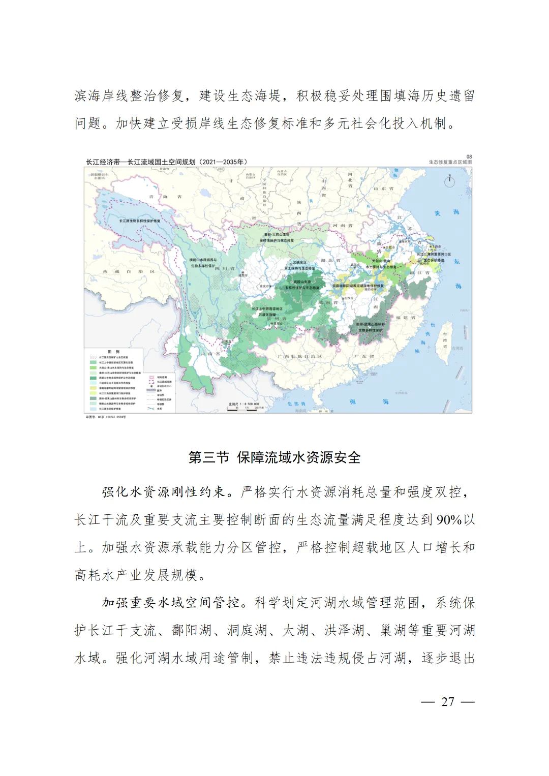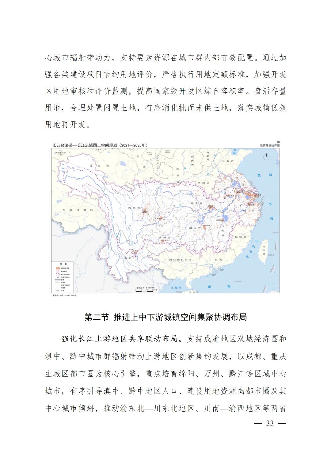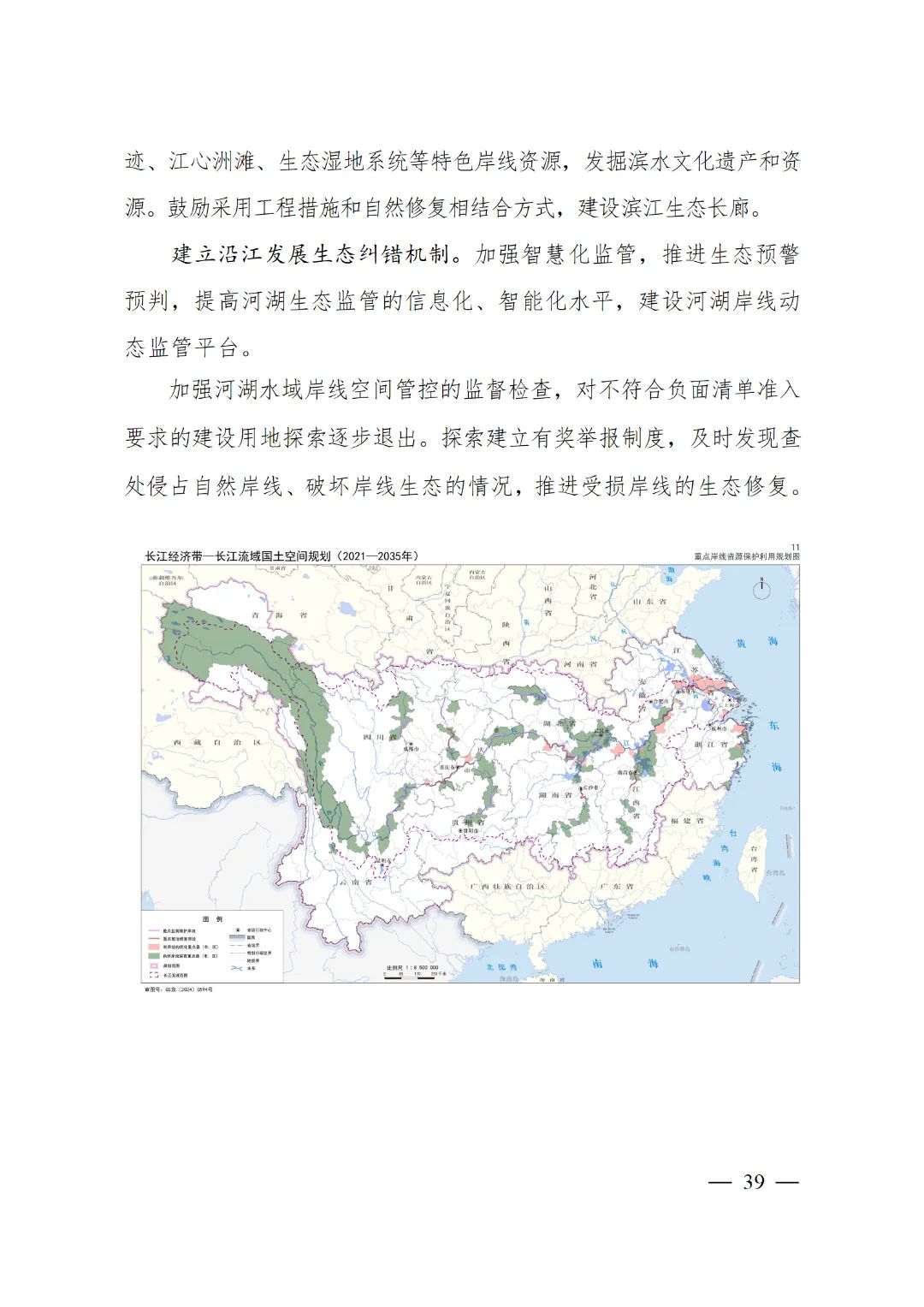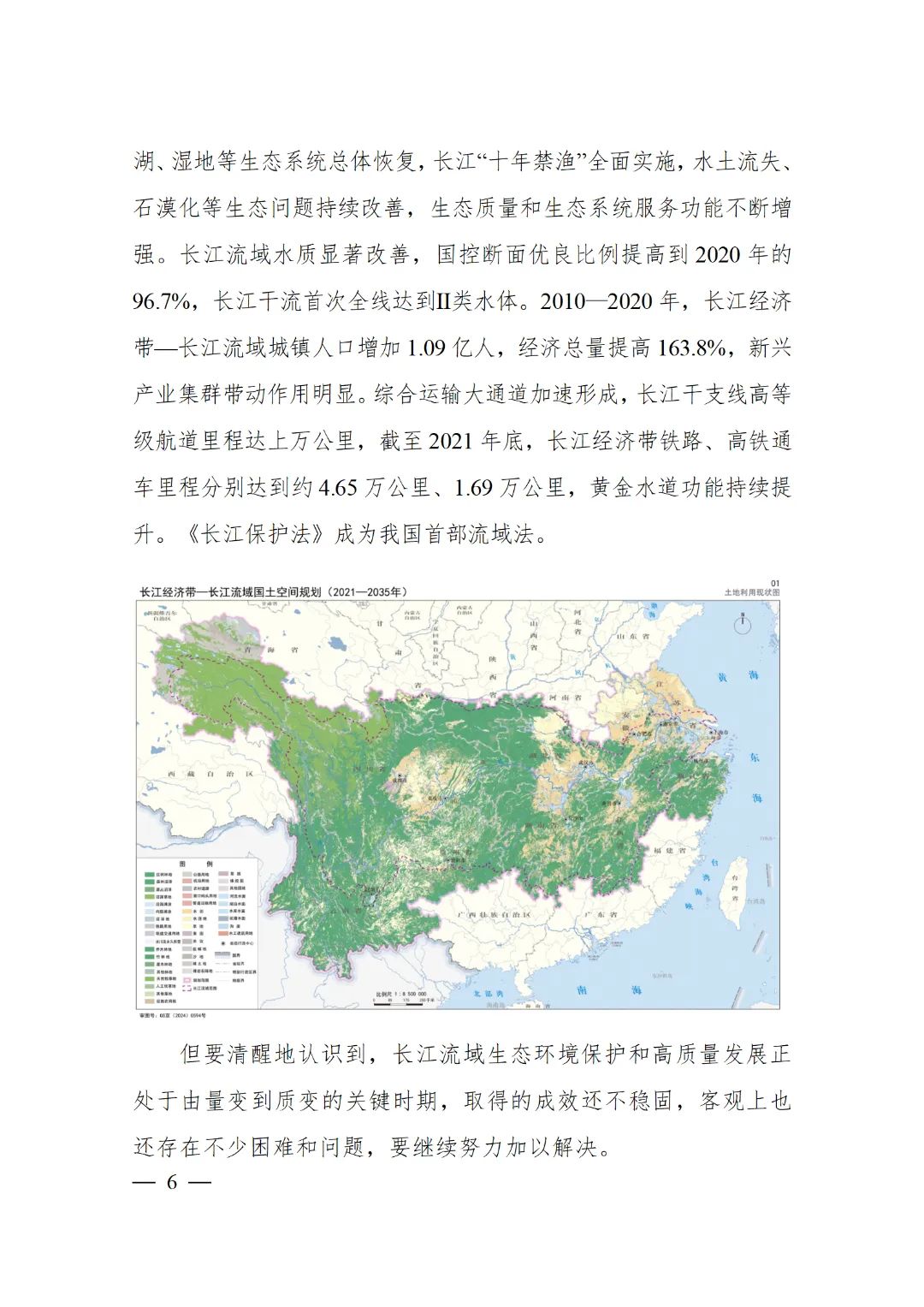 2024年2月9日,《長江經濟帶—長江流域國土空間規劃(2021—2035年)》經國務院批復同意。9月10日,自然資源部正式印發《長江經濟帶—長江流域國土空間規劃(2021—2035年)》。規劃范圍包括長江經濟帶11個省(市)全域,以及《長江保護法》規定的長江流域其他8省(區、市)的相關縣級行政區域,共計1173個縣級行政區域。規劃范圍包括陸域國土和內水、領海。其中,陸域面積240萬平方公里。(后附規劃范圍詳細表格)規劃期限為2021年至2035年。