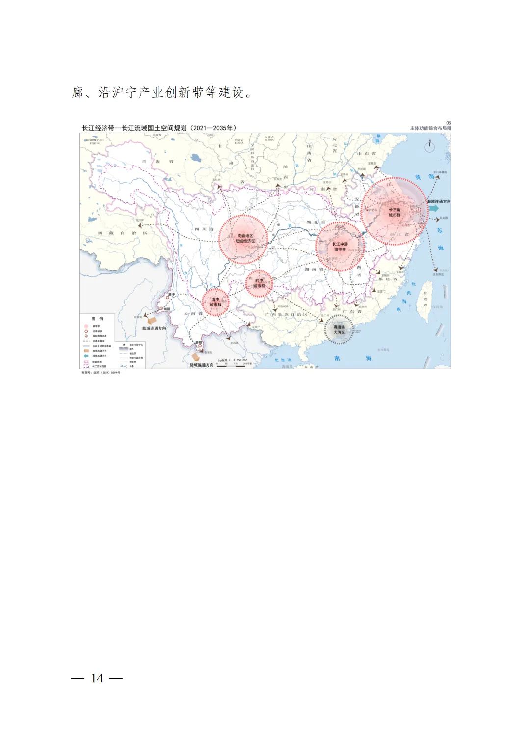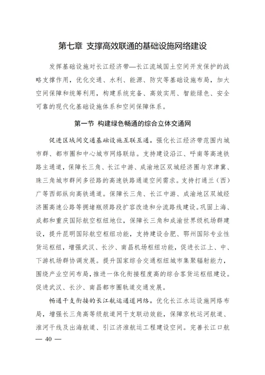 鞏固上海、成都和重慶國際航空樞紐地位,保障長三角和成渝世界級機場群建設,提升昆明國際航空樞紐功能,支持建設合肥、鄂州國際專業性貨運樞紐,增強武漢、長沙、南昌機場樞紐功能,促進長江上、中、下游機場群協調發展。提升國家綜合交通樞紐城市集聚輻射能力,圍繞產業空間布局,推進一體化銜接程度高的綜合客貨運樞紐建設。