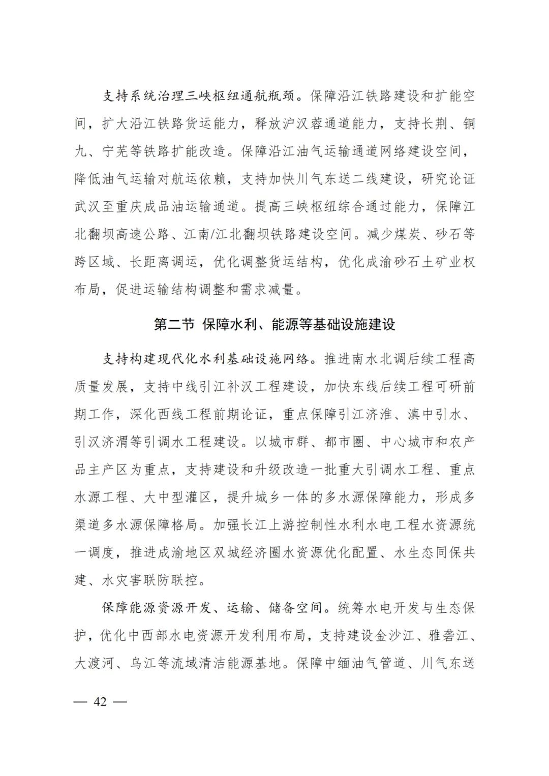 保障沿江油氣運輸通道網絡建設空間,降低油氣運輸對航運依賴,支持加快川氣東送二線建設,研究論證武漢至重慶成品油運輸通道。