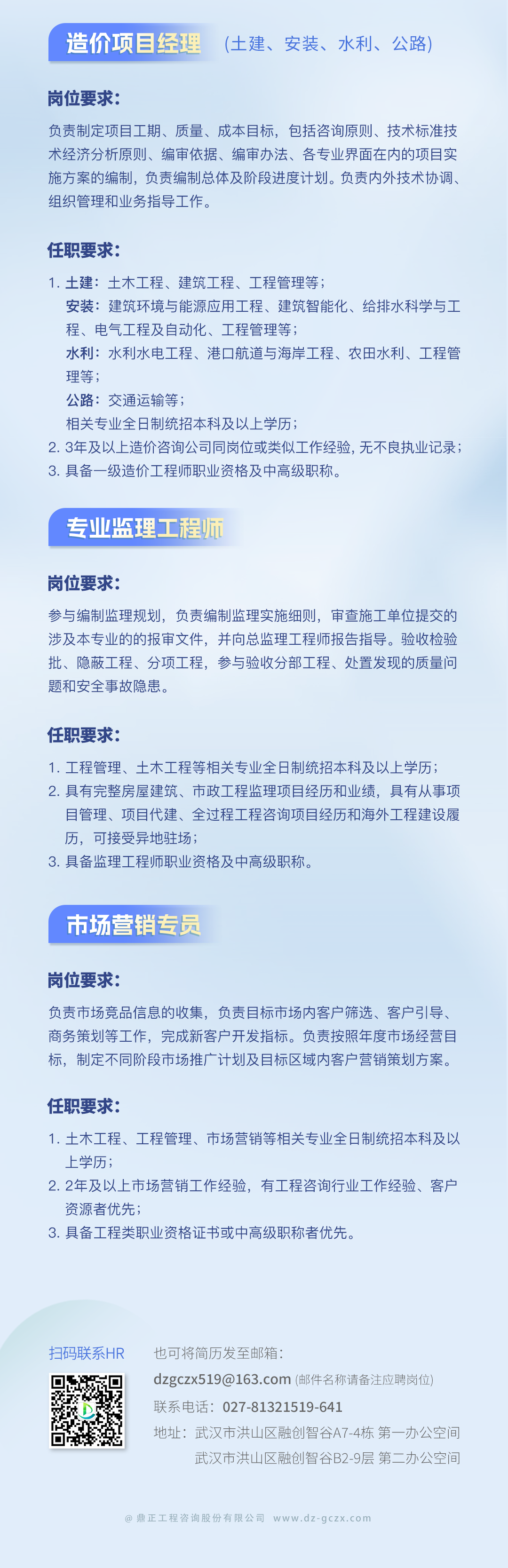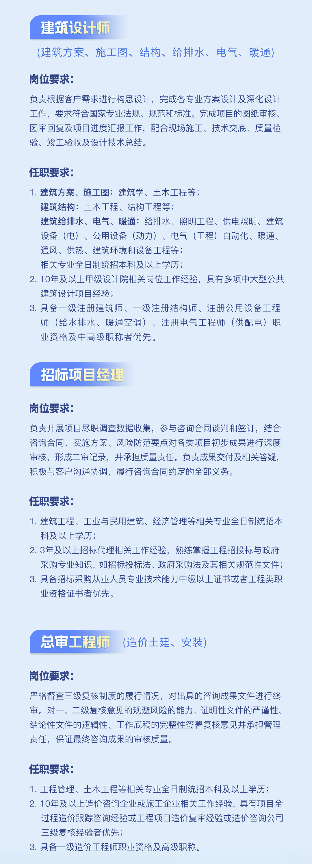 公司下設(shè)工程咨詢事業(yè)部、招標(biāo)代理事業(yè)部、工程造價(jià)咨詢事業(yè)部、規(guī)劃設(shè)計(jì)事業(yè)部等機(jī)構(gòu)...