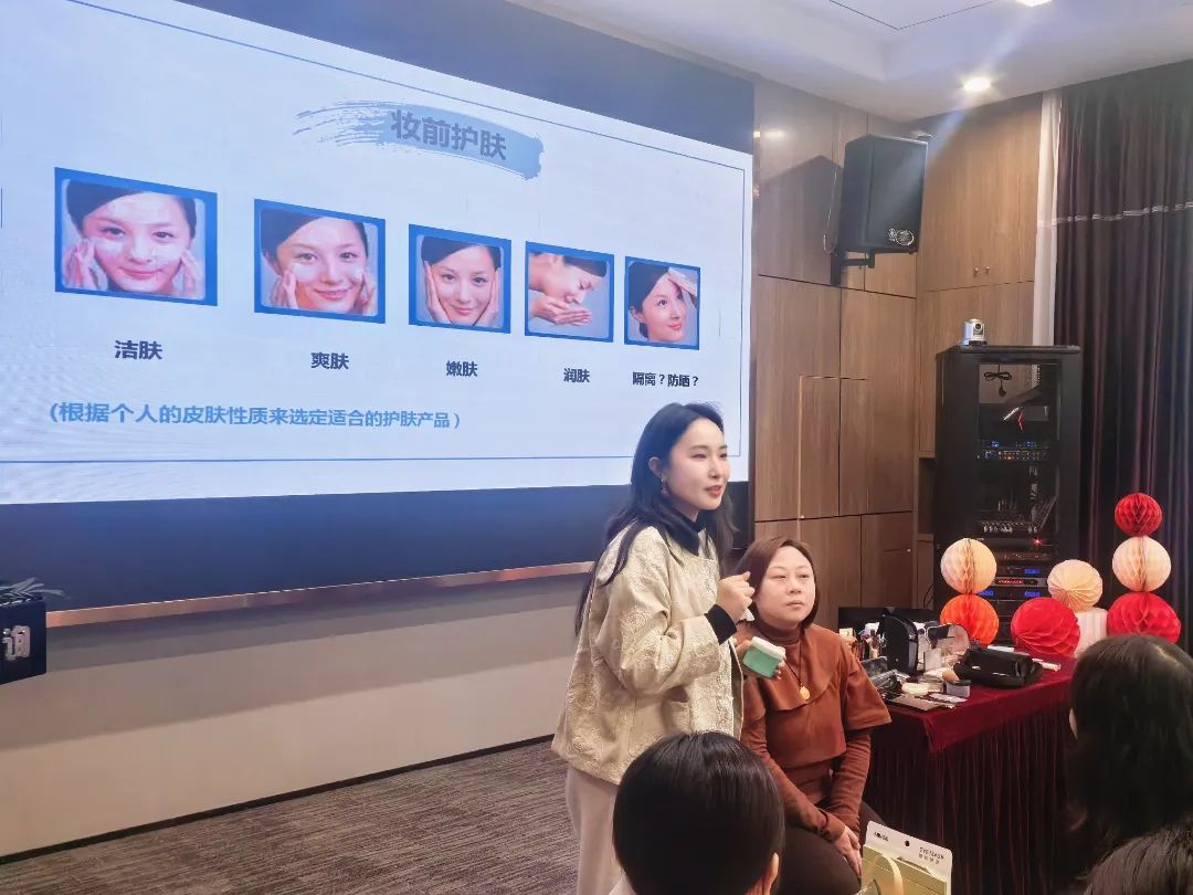 課堂上,專業(yè)美妝老師以細(xì)膩的筆觸和專業(yè)的視角,系統(tǒng)地解析了職場與生活雙場景下的妝容公式。她強調(diào),底妝是整體妝容的基石,不同膚色適合的底妝色號各不相同,精準(zhǔn)選擇能讓妝容更加自然和諧。從職場著裝到妝容設(shè)計,從理論剖析到實操技巧,從眉形勾勒到腮紅暈染,通過現(xiàn)場演示,將每一個步驟都講解得細(xì)致入微。她手把手地指導(dǎo),幫助在場的每一位女神擺脫“手殘”的困擾,傳授實用的化妝技巧,耐心解答每一個疑問。
