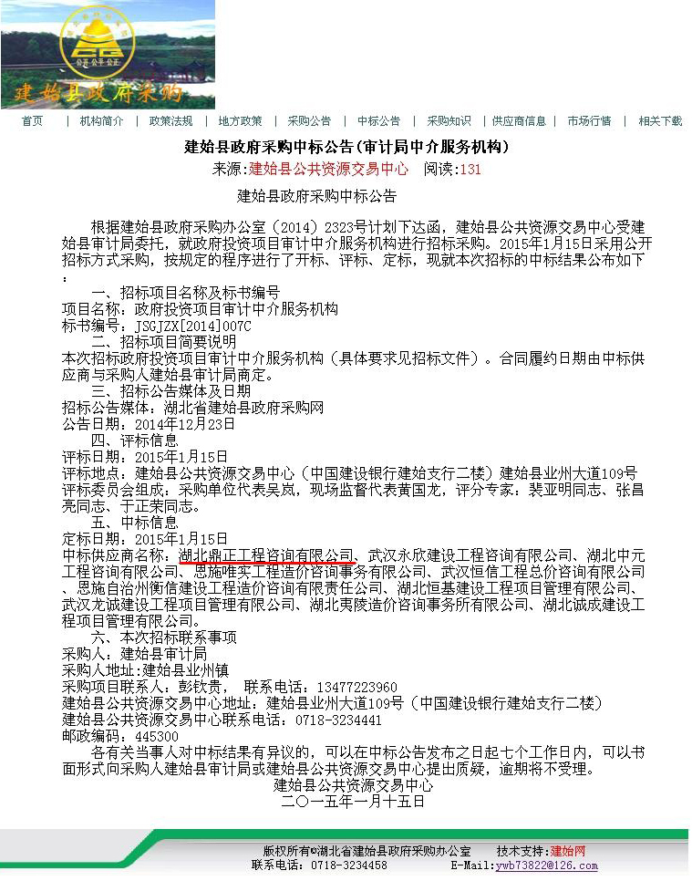 【經(jīng)營成果】我司入選建始縣政府投資項目審計中介服務機構庫