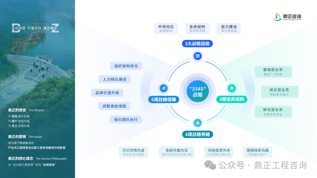 彭總指出,歷經行業深度調整,鼎正已站在全新的發展起點。他強調,破局的關鍵在于轉變思維模式,以全新姿態擁抱變革,探索新業務、構建新模式。“3345”戰略正是驅動這場轉型的核心引擎,通過堅定扎根縣域市場、構筑堅實技術護城河,重塑工程咨詢行業價值標準,鼎正將邁向更成熟、更理性的發展新階段,未來的發展也會變得更穩健。