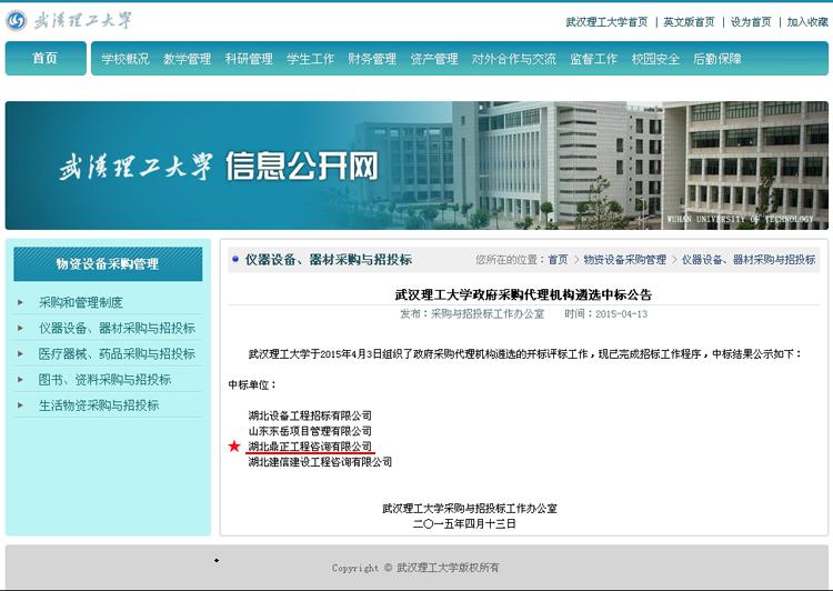 【經營成果】我司入選武漢理工大學政府采購代理機構庫