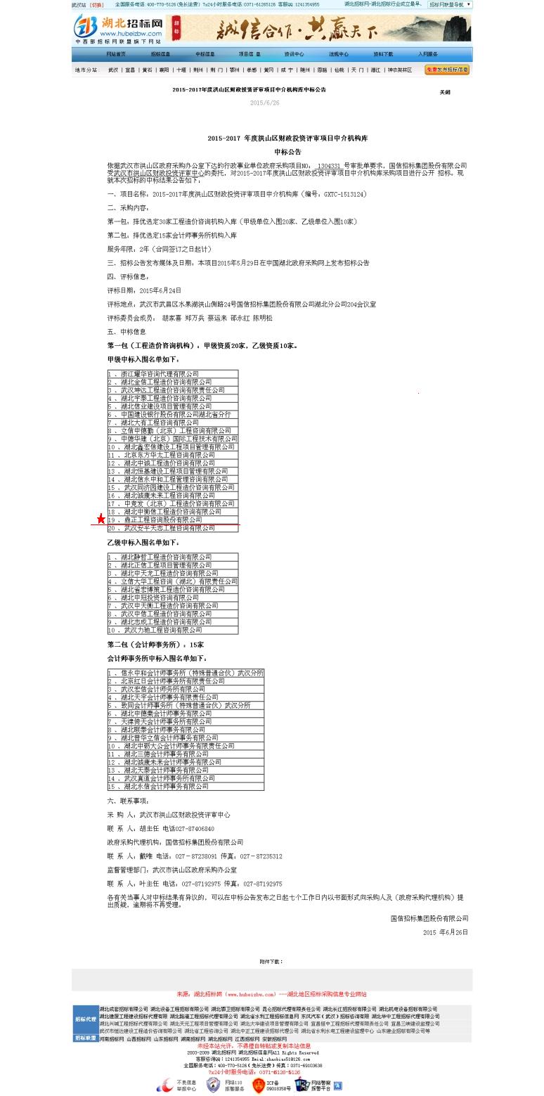 【經(jīng)營成果】我司入圍2015-2017 年度洪山區(qū)財政投資評審項目中介機構庫