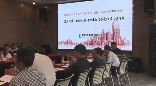 2019年4月26日上午9:00時,《湖北黃梅經濟開發區(大勝關山工業園)污水處理廠PPP項目》“兩評一案”專家評審會在珞珈會議室舉行。